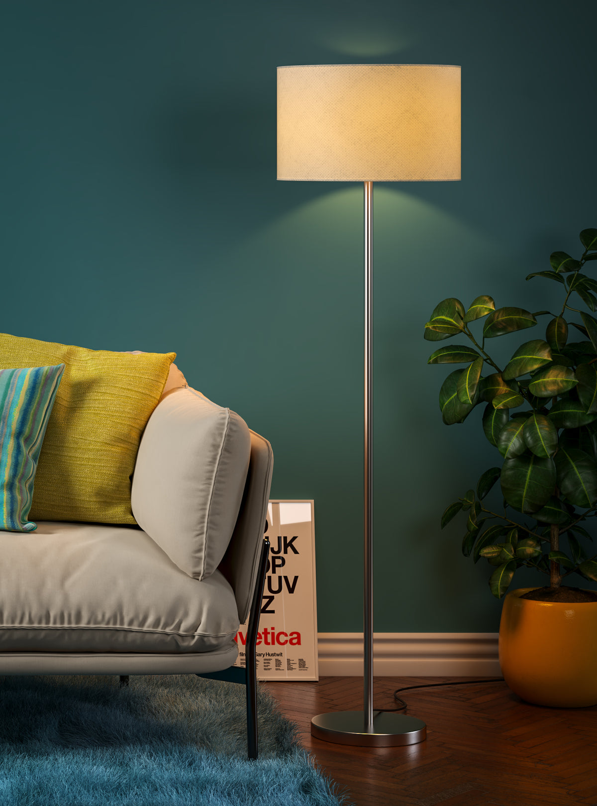 Overview: This standing silver lamp is an ideal decor as well as a lighting piece for the living room, bedroom, and dining room. The minimalist design of this lamp elevates your space by giving it a modern and premium look. It comes with an off-white lampshade that is suitable for all backgrounds. It is also well suited to provide the perfect amount of light while setting up your space's ambience and mood.