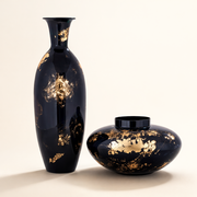 24K Gold Platina Iron Vase Set – Black & Gold Luxury Decorative Vases (Set of 2)