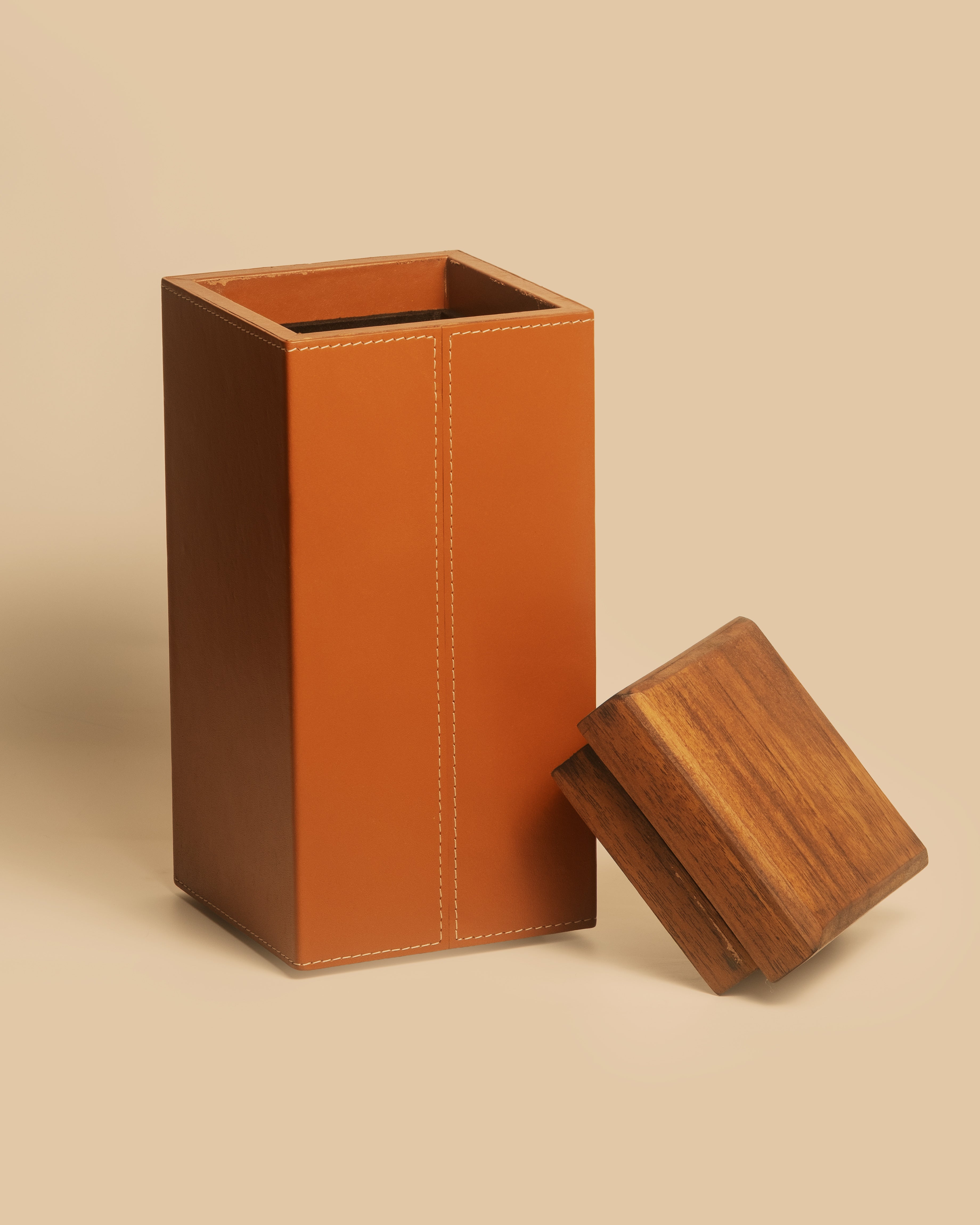 Solid Wood Lid and Base: The lid and bottom of each box are made from solid wood. This choice provides a sturdy, stable foundation and a smooth, secure top that protects the contents. The natural wood grain complements the leather, creating a timeless and luxurious look.